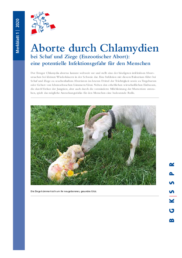 Der Erreger Chlamydia abortus kommt weltweit vor und stellt eine der häufigsten infektiösen Abortursachen bei kleinen Wiederkäuern in der Schweiz dar. Eine Infektion mit diesem Bakterium führt bei Schaf und Ziege zu seuchenhaftem Abortieren im letzten Drittel der Trächtigkeit sowie zu Totgeburten oder Geburt von lebensschwachen Lämmern/Gitzi.